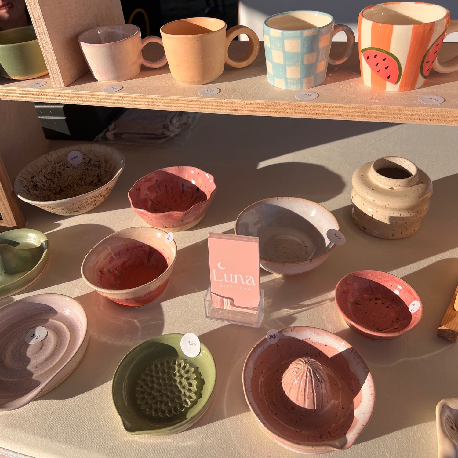 Hi I’m Sarah, the hands and heart behind Luna with Love. Based in beautiful Tauranga, I create handmade pottery and hand-painted wall hangings that celebrate creativity, imperfection, and everyday beauty.